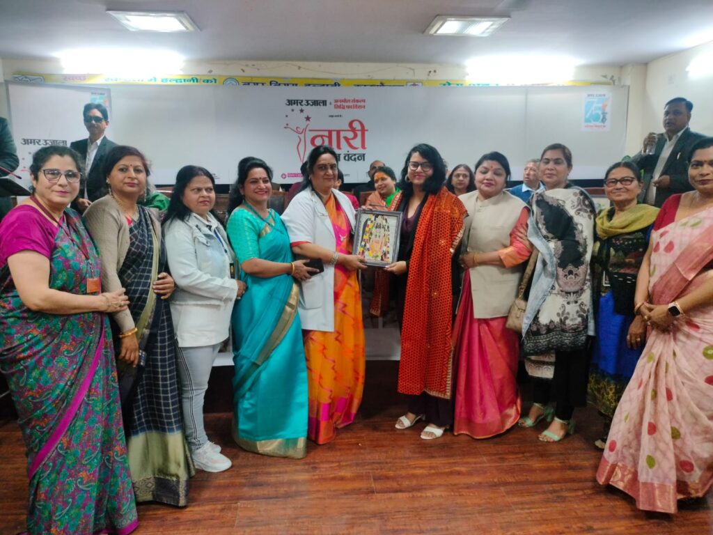 अंतर्राष्ट्रीय महिला दिवस सप्ताह के अवसर पर अमर उजाला के सहयोग से अनमोल संकल्प सिद्धि फाउंडेशन ने शुक्रवार को नगर निगम हल्द्वानी सभागार में नारी शक्ति वंदन कार्यक्रम में विभिन्न अस्पतालों में उत्कृष्ट कार्य कर रही 34 नर्सो को सम्मानित किया। कार्यक्रम की अध्यक्षता संस्था अध्यक्ष सुचित्रा जायसवाल ने की जबकि संचालन रिम्पी बिष्ट ने किया। कार्यक्रम में संस्था द्वारा उघु नाटिका के माध्यम से नारी के सम्मान व स्वाभिमान पर जोर दिया गया।